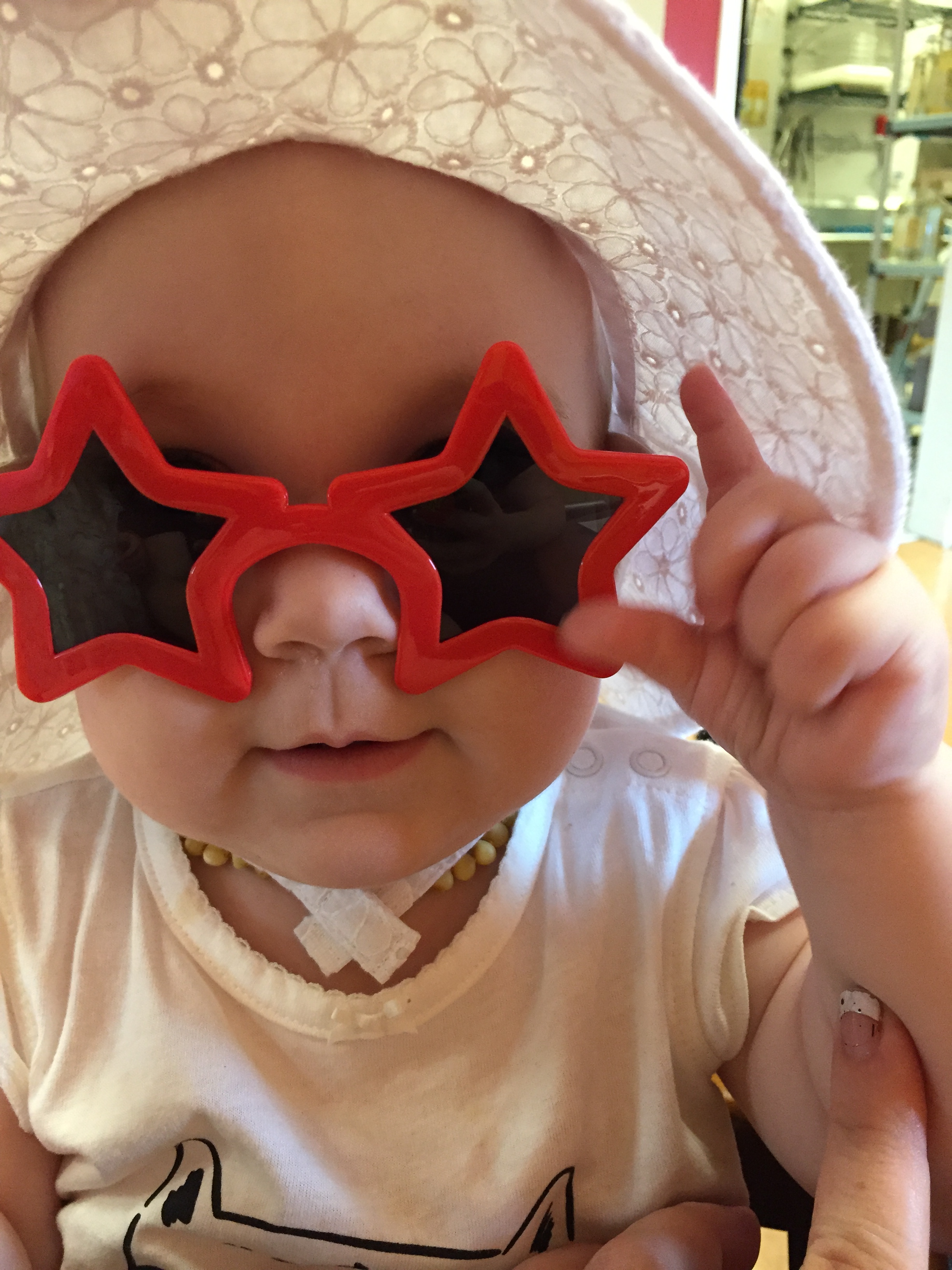 As always, our last day with our Weekly Wonder Story is spent creating our own. This time, we took Babykins with us on our momma/daughter writing date. E likes it when it is “all of us girls.” We hit Target first and did some father’s day shopping… and decided to get some dollar sunglasses from the dollar section. This is the first time Babykins has worn a bonnet and sunglasses (let alone star ones), and I just think she looks so incredibly cute! #biasedbutidontcare